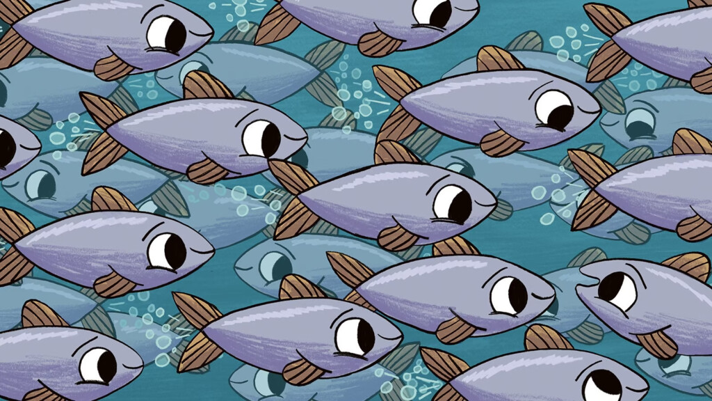 Oh Schreck! Möwenalarm! Der in harmonischen Formationen schwimmende Hering-Schwarm gerät in Aufruhr unter den Wellen des Ozeans. Ein kleiner Hering rettet sich gerade noch rechtzeitig in einen Gezeitentümpel. Doch wo ist nur sein Schwarm geblieben? Während er den Weg zurück ins Meer sucht, begegnen ihm andere Tiere und Pflanzen im Tümpel, die ihm zunächst Angst einflössen. Mit der Unterstützung eines Seesterns schliesst er Freundschaften und lernt, wie er die Möwe vertreiben kann. Das comicartige Bilderbuch voller Humor mit viel Bild und wenig Text ist auf der Basis des gleichnamigen, preisgekrönten Trickfilms entstanden. Sachwissen über Seeanemonen, Krebse, Seesterne und Tintenfische wird ebenfalls vermittelt.